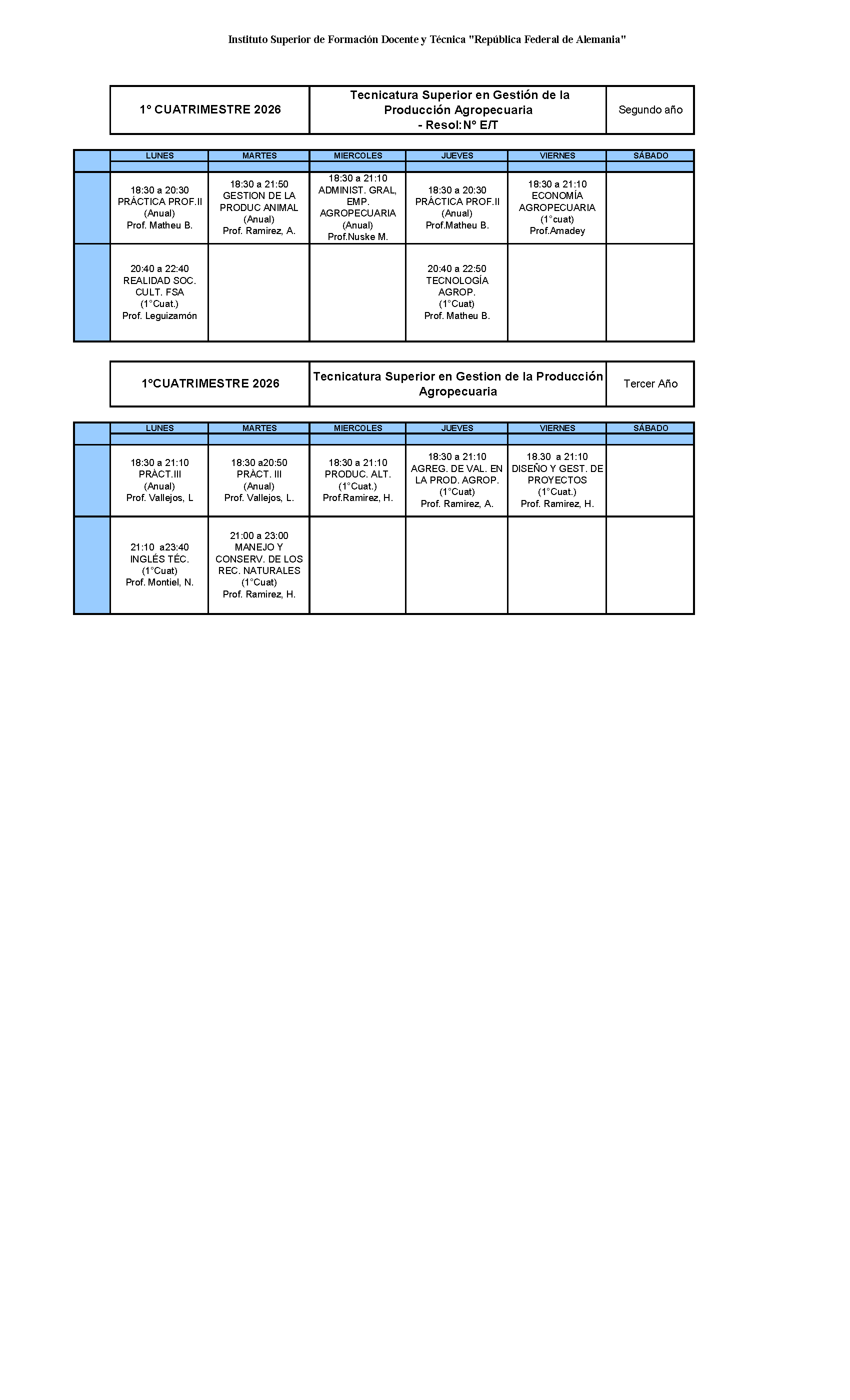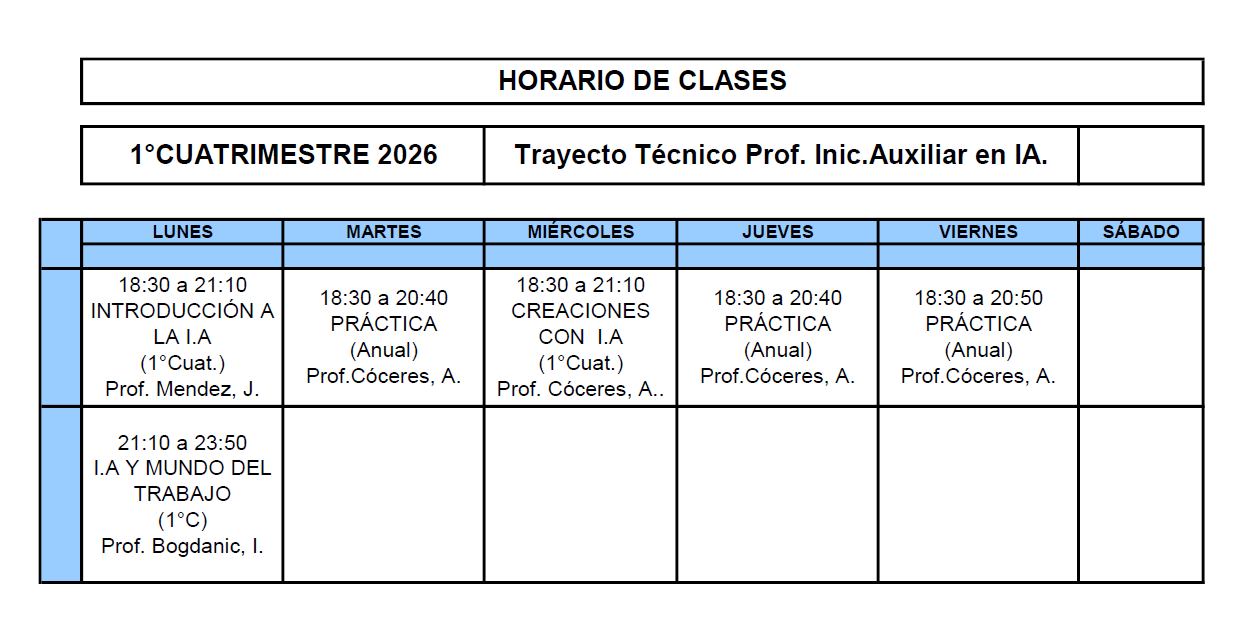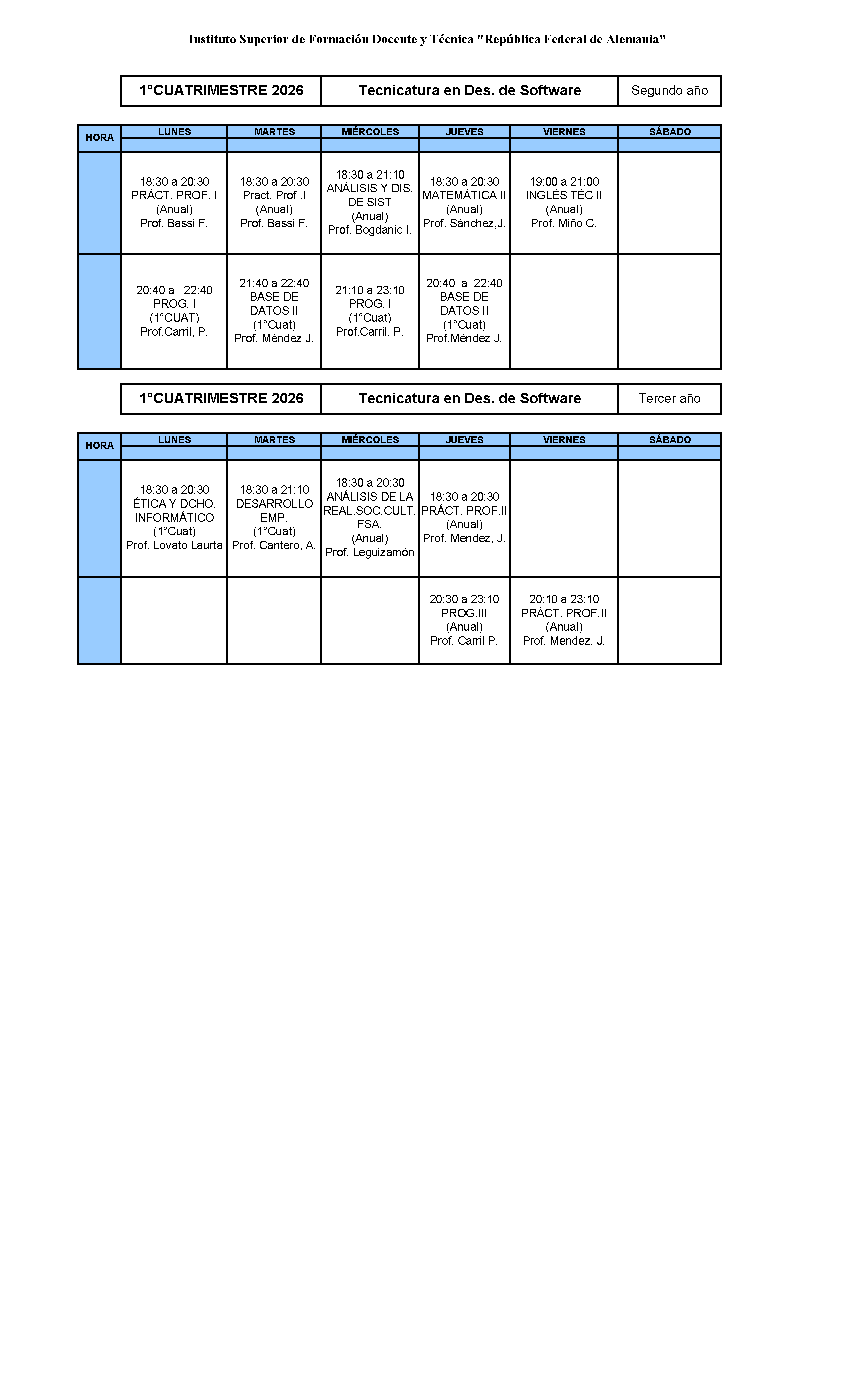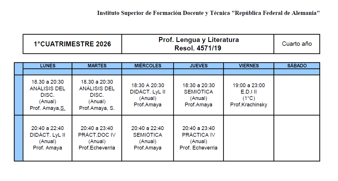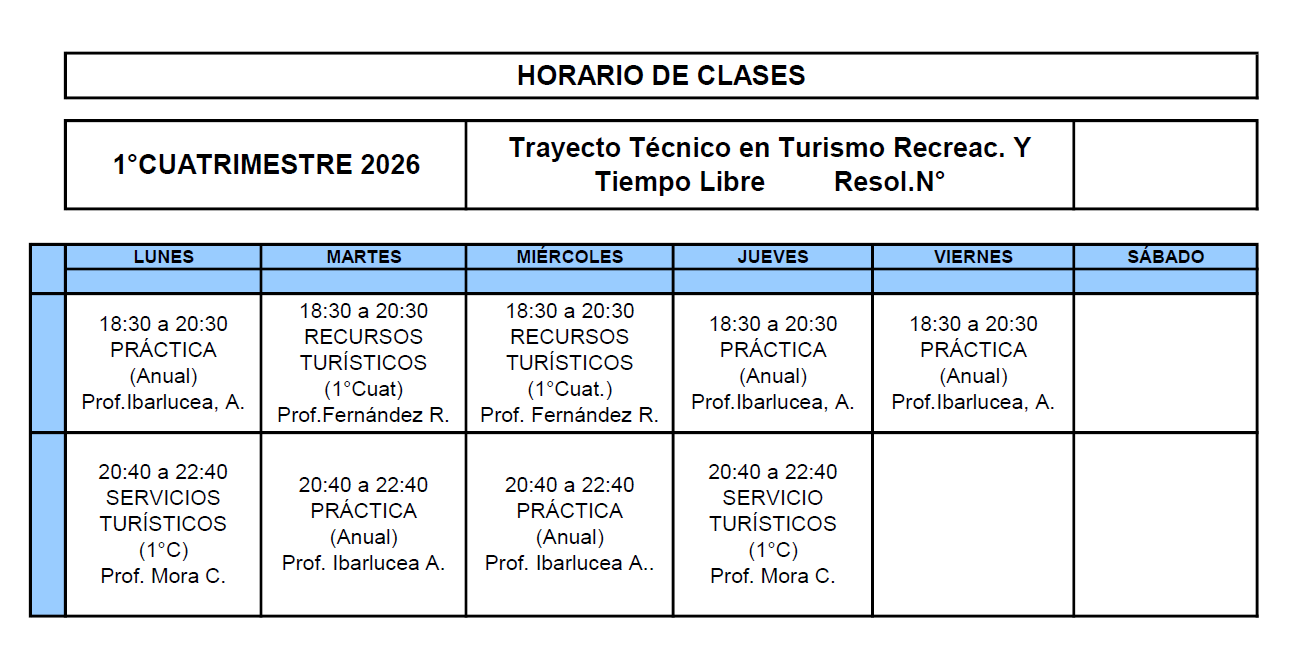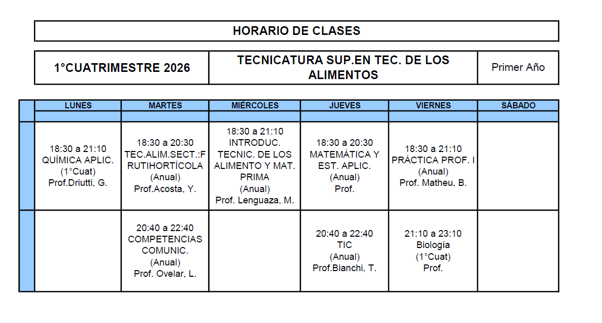 HORARIOS CORRESPONDIENTES A LOS ESPACIOS CURRICULARES DE TODAS LAS CARRERAS CICLO 2026