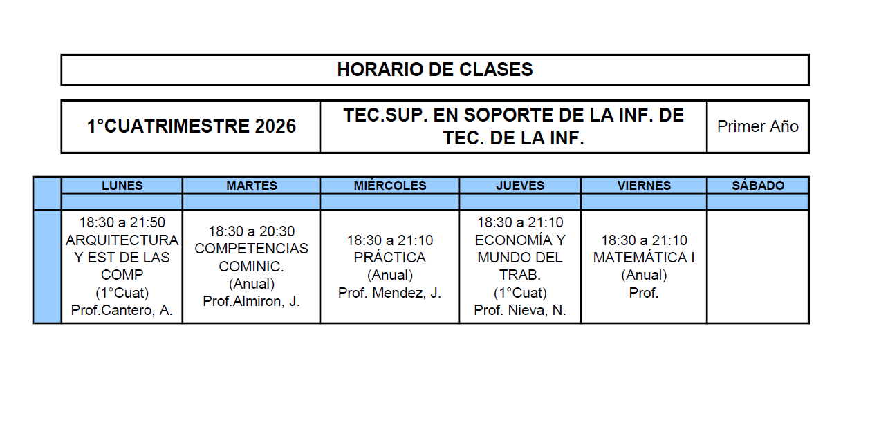 TECNICATURA SUPERIOR EN SOPORTE DE INFRAESTRUCTURA DE TECNOLOGÍA DE LA INF.